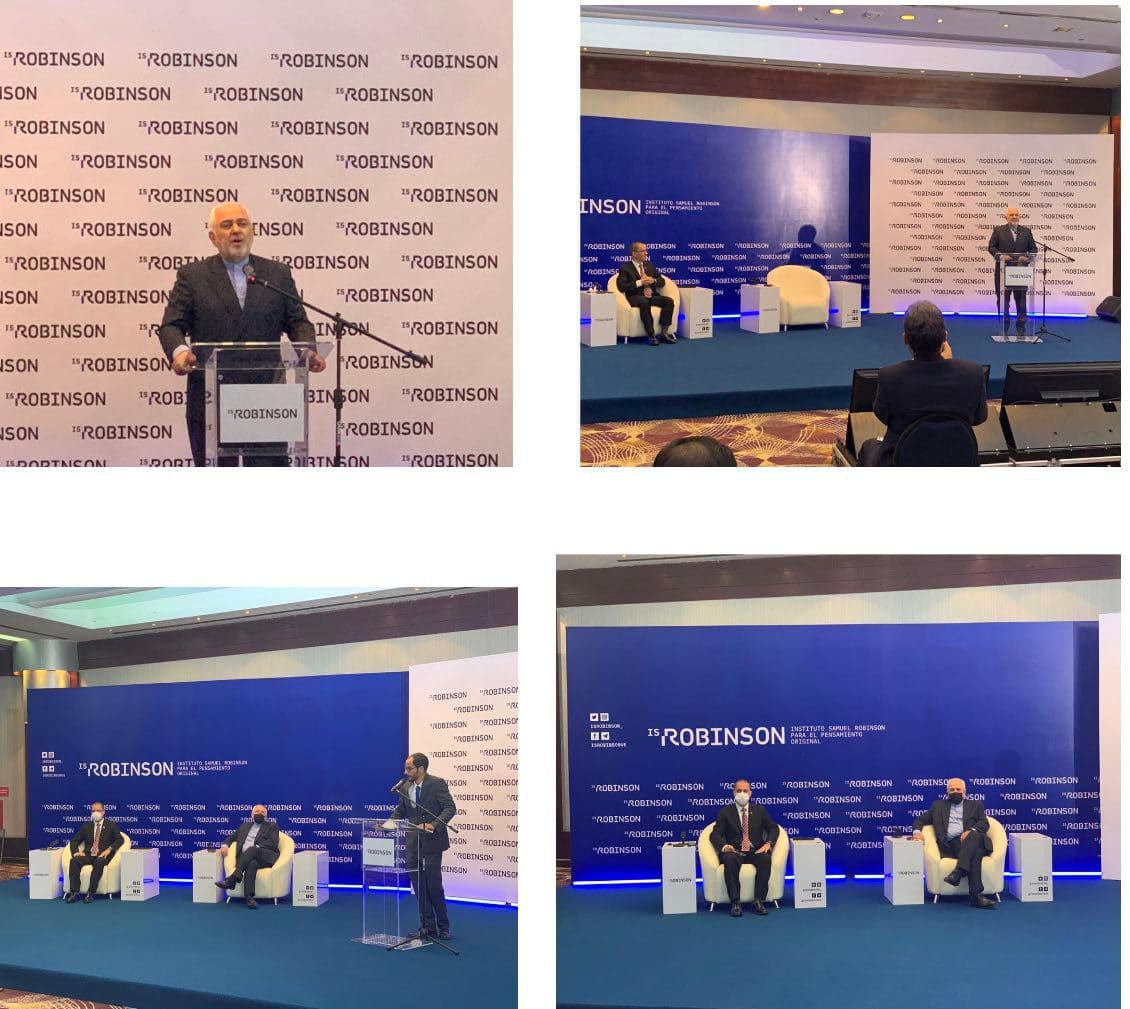 Foreign Minister Mohammad Javad Zarif, who is in Caracas for talks with Venezuelan officials, attended a joint panel with his Venezuelan counterpart at Samuel Robinson Institute.