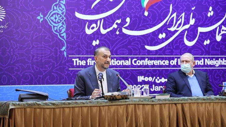 The National Conference on Iran and Neighbors was held on Monday, 24 January, with the participation of the Institute for Political and International Studies of the Foreign Ministry and the Institute for the Islamic World’s Future Studies.At the conference, Major General Yahya Rahim-Safavi, Interior Minister Ahmad Vahidi, Minister of Economy Ehsan Khandouzi and the scientific secretary of the conference Seyed Jalal Dehghani Firoozabadi, offered their thoughts.In the follow-up to their speeches, seven scholarly panels were held on neighborhood policy, environmental cooperation, political economy, geostrategic rivalries, scientific and cultural exchanges and regional and international corridors. At the conclusion, Foreign Minister Hossein Amir Abdollahian talked about the neighborhood policy of the Islamic Republic of Iran and Iran’s achievements and actions in this regard. He said under the new neighborhood policy, consultations with all neighbors, including on the Vienna talks, is among our priorities.The foreign minister noted that the Islamic Republic of Iran is in vital need of making its competitive advantages operational in a lasting international environment, stressing that this is a key issue and will come out of a coherent neighborhood policy.The neighborhood policy of the 13th administration is based on trust-building and this will hugely help speed up national progress.Amir Abdollahian further expanded on the policy saying the Islamic Republic of Iran faces two major challenges in pursuing this objective: The first is the eastern neighbor, that is Afghanistan. Security of borders is a very significant issue for the Islamic Republic of Iran and this was underlined during the recent meeting with the Taliban officials.The top diplomat said the Afghan side was clearly told that the establishment of an inclusive government in Afghanistan is of prime significance for Iran and that Tehran will take action on recognizing the new Afghan government and handing over its embassy after the formation of the inclusive government. The foreign minister said the second challenge to the neighborhood policy is the issue of Yemen. He said what is going on between Yemen and some neighbors is a Yemeni issue adding that the Islamic Republic of Iran has already tabled its four-point political plan on the subject and supports it. Amir Abdollahian also said the escalation of the war is a source of concern and called on the United Arab Emirates and Saudi Arabia to adopt a constructive approach and move to accept an end to the war, ceasefire and intra-Yemeni talks.The foreign minister also backed continuation of talks with Saudi Arabia stressing that whenever this country decides to normalize ties with the Islamic Republic of Iran, we will support reopening of the embassies.During his speech, Amir Abdollahian also talked about Russia, as Iran’s northern neighbor. He declared that a long-term cooperation agreement will be signed between the two countries in the near future, adding that the necessary agreements on the roadmap were reached during the visit by President Ebrahim Raisi to Russia.The top diplomat also touched on some marginal moves on social media stressing that the visit’s achievements were in line with national interests. He noted that nothing took place that would damage Iran’s political decisions.Amir Abdollahian also talked about the Vienna talks. He said the American side is using every means to convey the message that it wants negotiations with Iran at any level.The foreign minister reiterated that, so far, the relation with the US has been through intermediaries. He said, however, that if the negotiations move to a stage where reaching a good and well-guaranteed agreement requires some level of talks with the US, Iran will not ignore this matter.