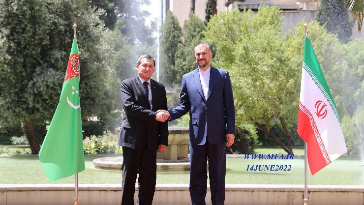 Iranian Foreign Minister Hossein Amirabdollahian and his counterpart from Turkmenistan, Raşit Meredow, sat down for talks on issues of mutual interest, ahead of a visit by Turkmenistan’s President Serdar Berdimuhamedow to the Islamic Republic.Amirabdollahian once again offered congratulations to Turkmenistan on the successful holding of a presidential election there and emphasized the significance of the Turkmen president’s visit to Tehran on Tuesday on the 30th anniversary of the establishment of relations between the two countries.The Iranian foreign minister said the foundations of ties between the two countries had been laid properly and strongly, and that the two sides should work to fully implement a series of agreements and memoranda of understanding reached between them.He outlined the joint economic, political and cultural projects of the two countries and said three important subjects of cooperation are on the agenda of the two countries this year, including the 17th Joint Economic Commission, the 15th Consular and Border Commission, and holding of the Joint Economic Consultations Committee between the foreign ministries of Iran and Turkmenistan, which need the attention of both sides.For his part, Meredow thanked Iran for properly organizing and hosting the meeting, saying the Turkmen president’s trip to Tehran is of high importance for bilateral relations.He said the Turkmen government had prepared different documents and projects for the visit, expressing hope that the trip would bring about their serious implementation.The Turkmen foreign minister also stressed the necessity of bilateral and five-sided cooperation toward setting the stage for a summit of heads of the Caspian states in Ashgabat. During the meeting, the two chief diplomats also exchanged views on the agenda of the Turkmen president’s visit to Tehran. They also described the Caspian as a sea of friendship and peace, calling for collective efforts to protect the stability, security and unique environment of the body of water. They also discussed other regional topics such as Afghanistan and the developments in Central Asia, among other things.