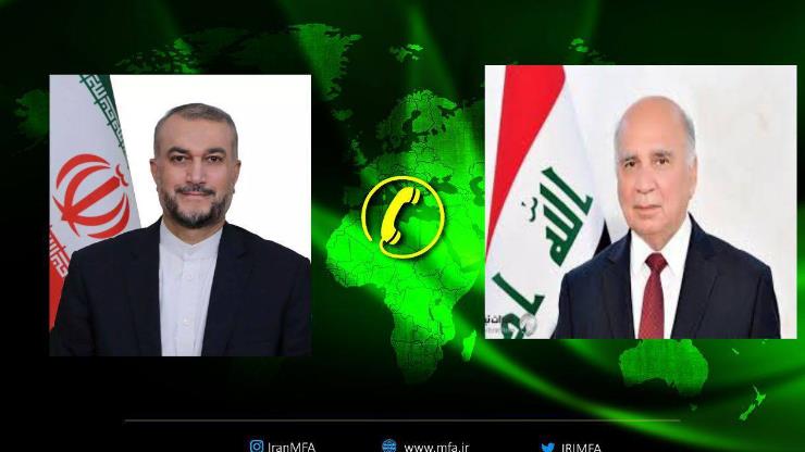Iranian Foreign Minister Hossein Amirabdollahian, and his Iraqi counterpart, Fuad Hussein, had a telephone conversation on Sunday to discuss bilateral relations and exchange views on the current developments in Palestine.