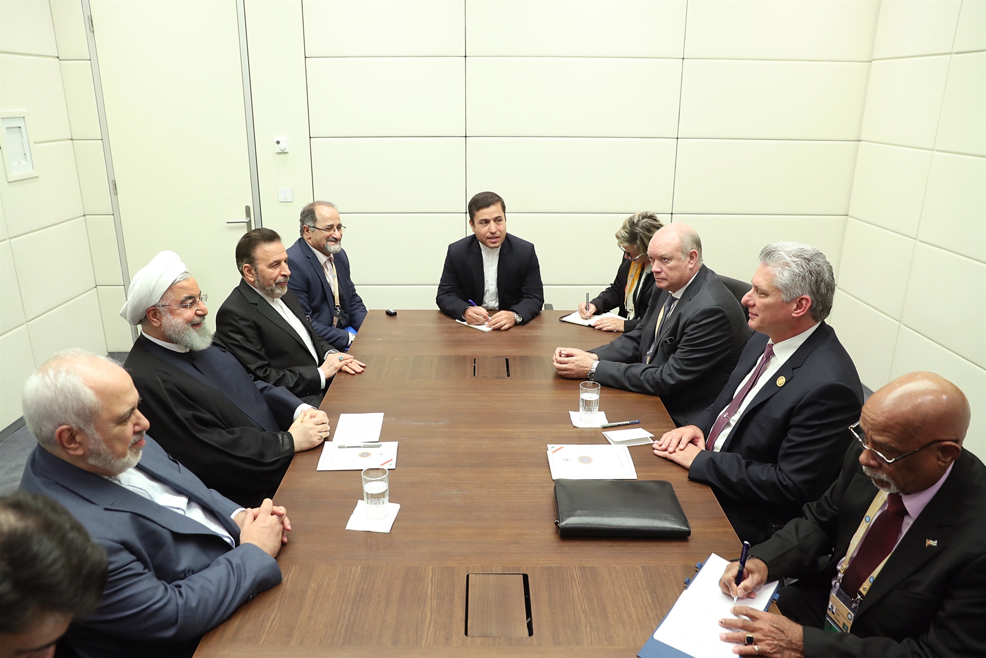 Speaking in a meeting with the President of Cuba Miguel Díaz-Canel on Friday on the sidelines of the 18th Summit of Heads of State and Governments of the Non-Aligned Movement (NAM) in Baku, President Hassan Rouhani stressed, “We know the Cuban nation as resistant and warrior nation”.